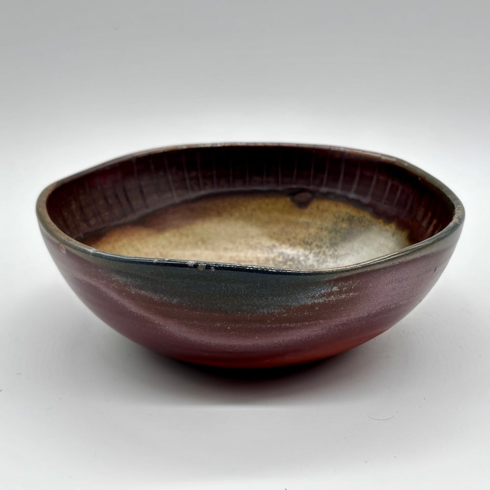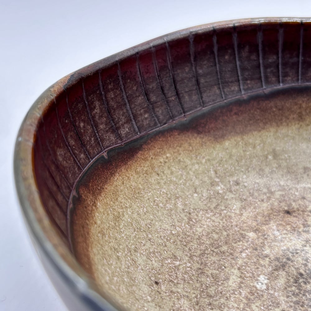 This Bowl was made out of a white stoneware, porcelain blend. It is inlayed with iron oxide and aside from its naturally produced glaze, it has durable liner glaze. It was fired for 5 days in a Anagama in Oregon.