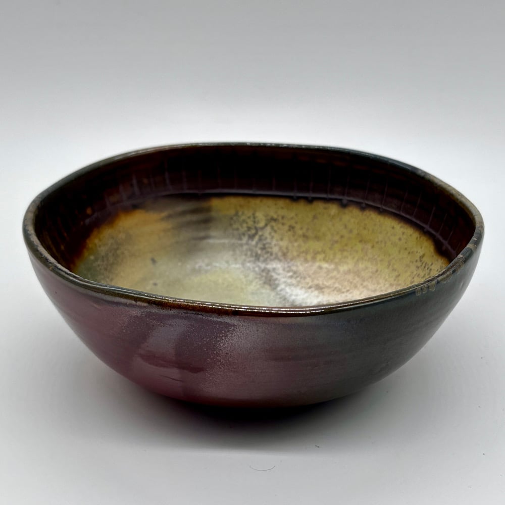 This Bowl was made out of a white stoneware, porcelain blend. It is inlayed with iron oxide and aside from its naturally produced glaze, it has durable liner glaze. It was fired for 5 days in a Anagama in Oregon.