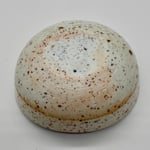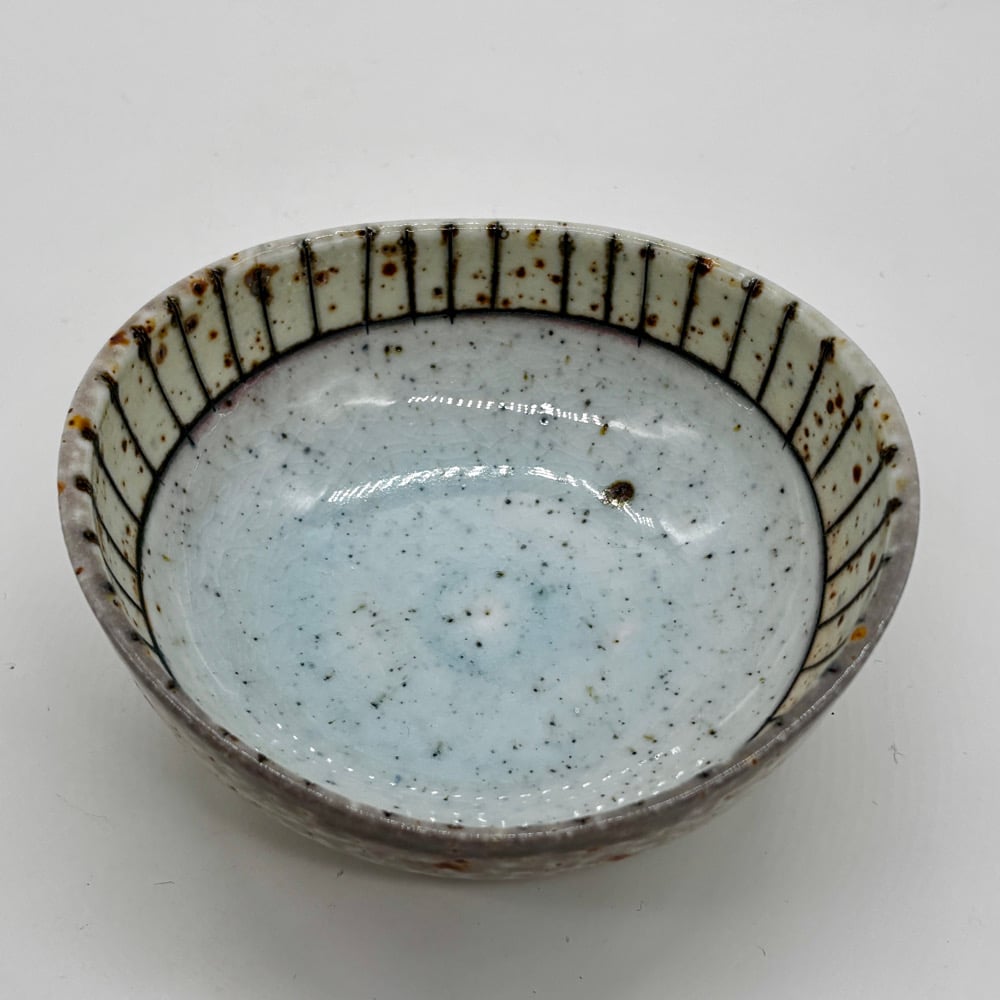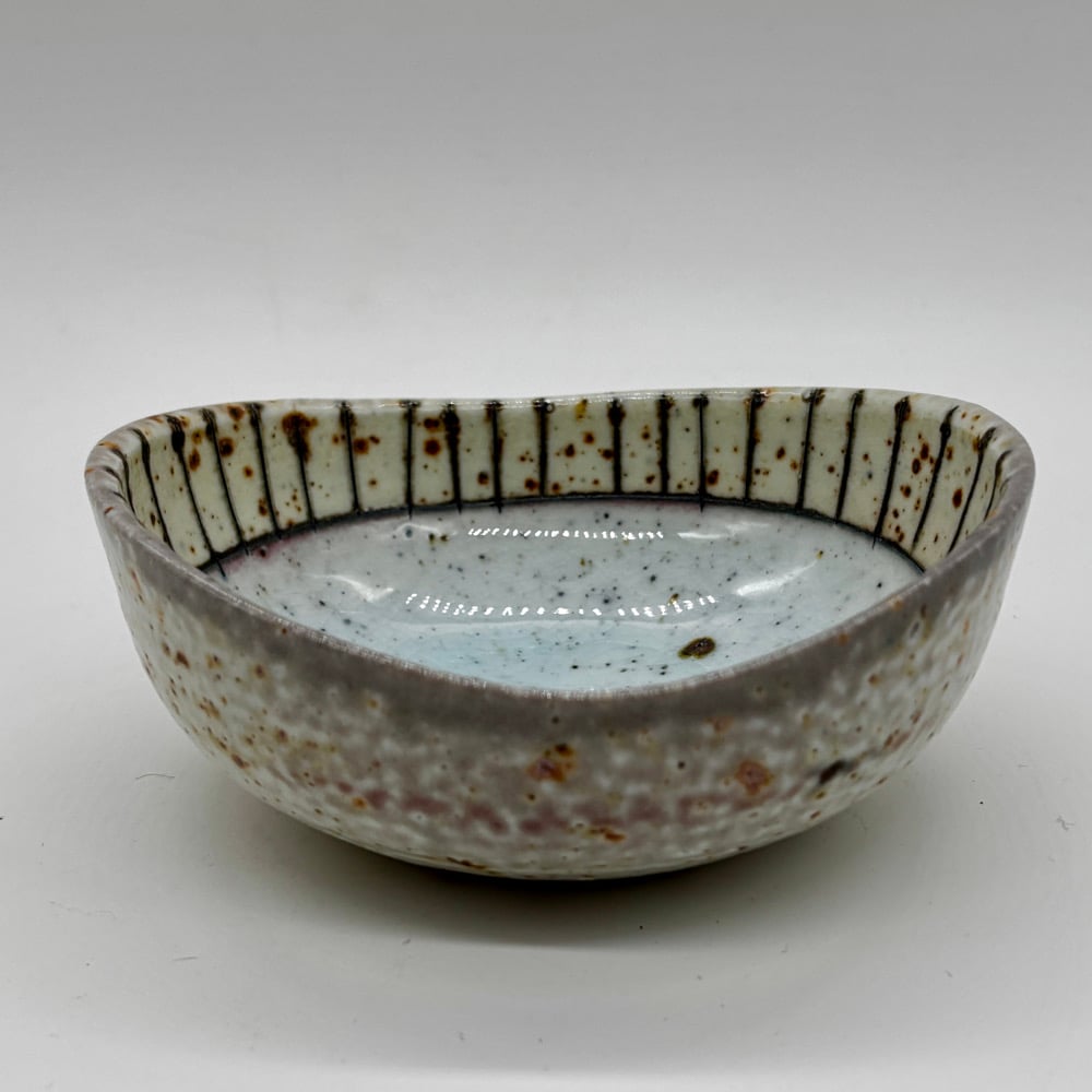 This dish is made out of porcelain blended playground sand. It is inlayed with a black stain and aside from its naturally produced glaze, it has a durable celadon liner glaze. It was fired in a gas kiln and soda was added.