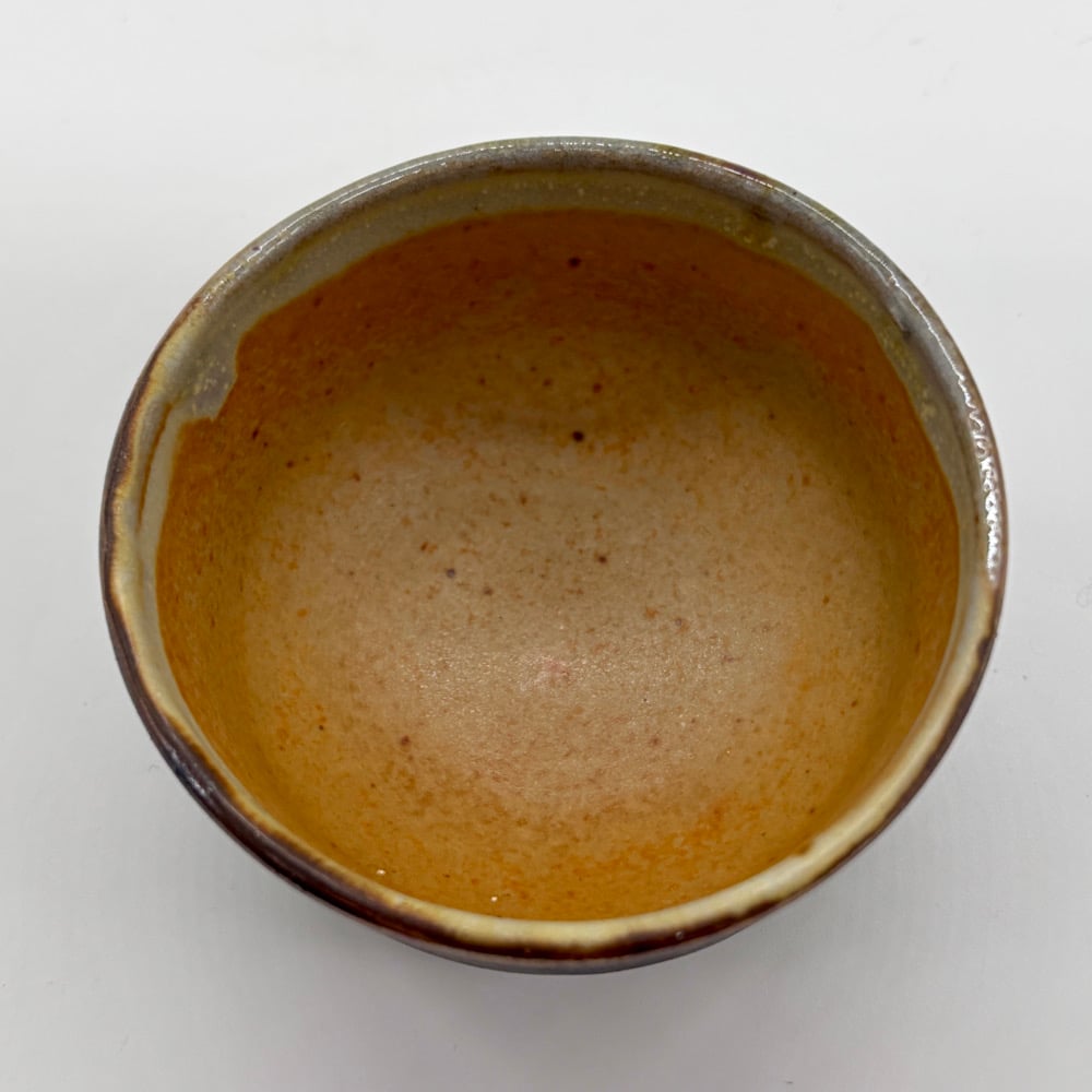 This 3oz cup is made from a porcelain/stoneware blend and coated with a dark clay body slip. It was fired in a gas kiln and soda was added.