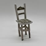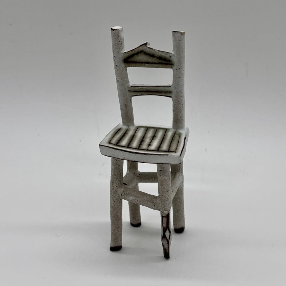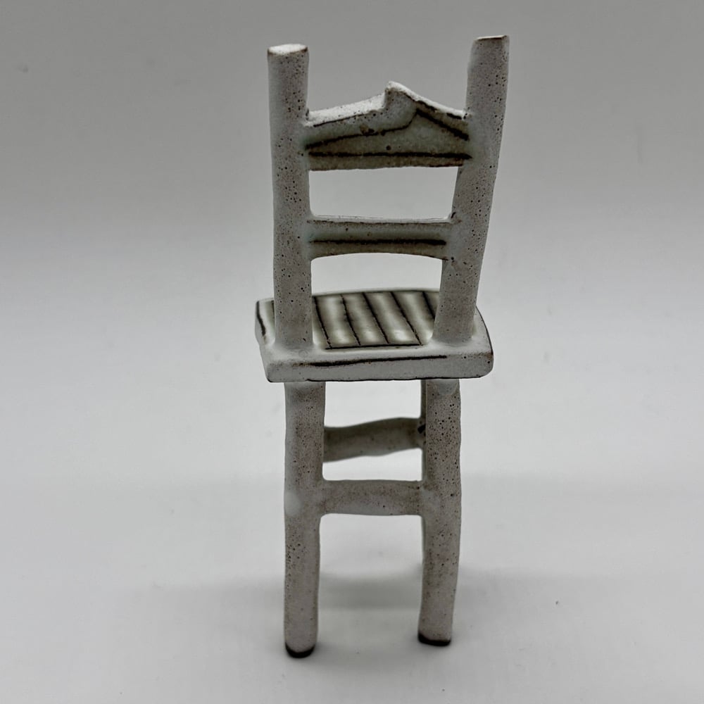 This tiny chair is made out of a dark stoneware, inlayed with copper carbonate and glazed with a matte white glaze.